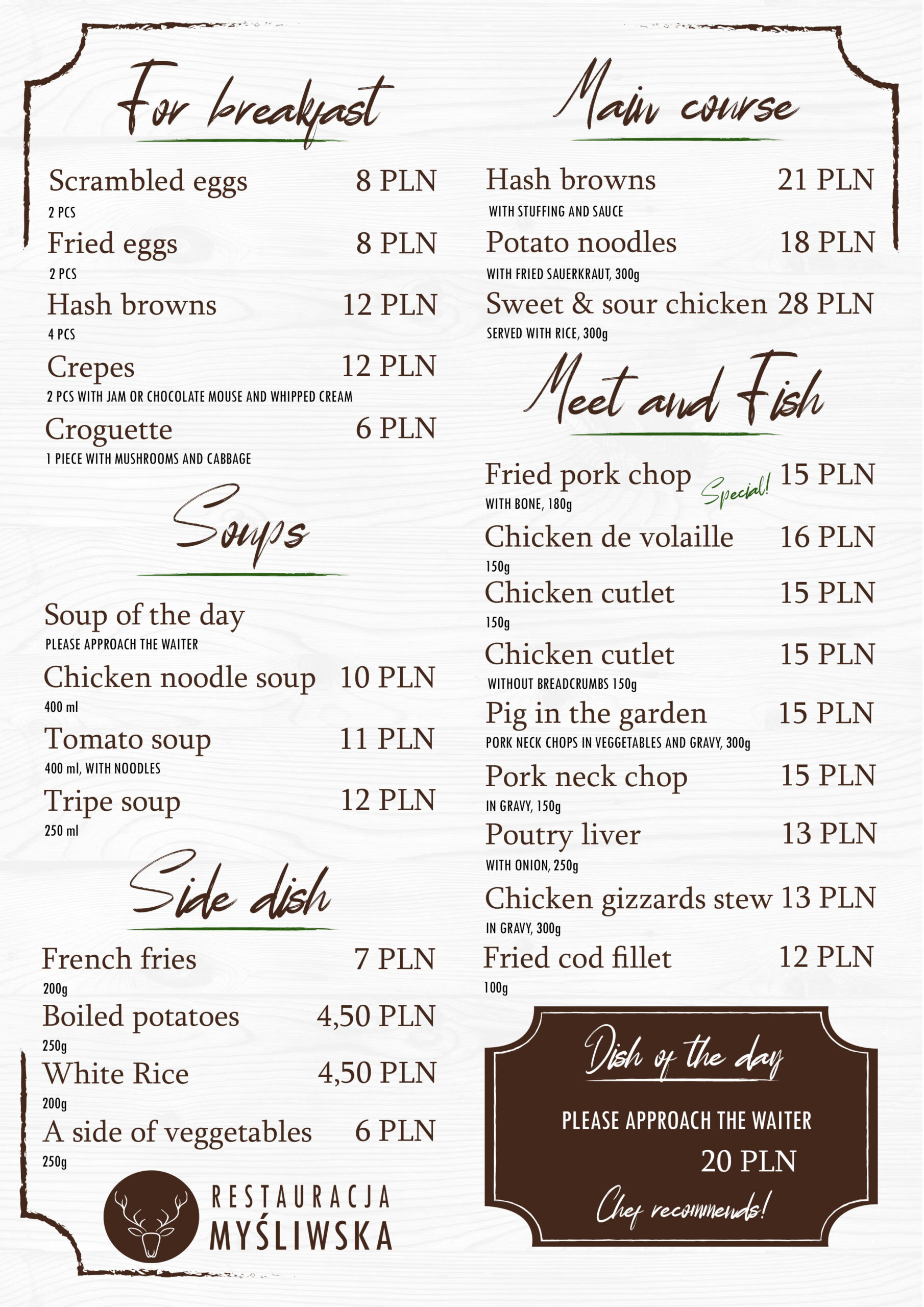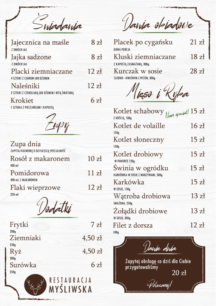 Zapraszamy do naszej Restauracji! Oferujemy możliwość zamówienia DAŃ OBIADOWYCH W GODZINACH OD 10.00 DO 16.00, RÓWNIEŻ z odbiorem na miejscu.